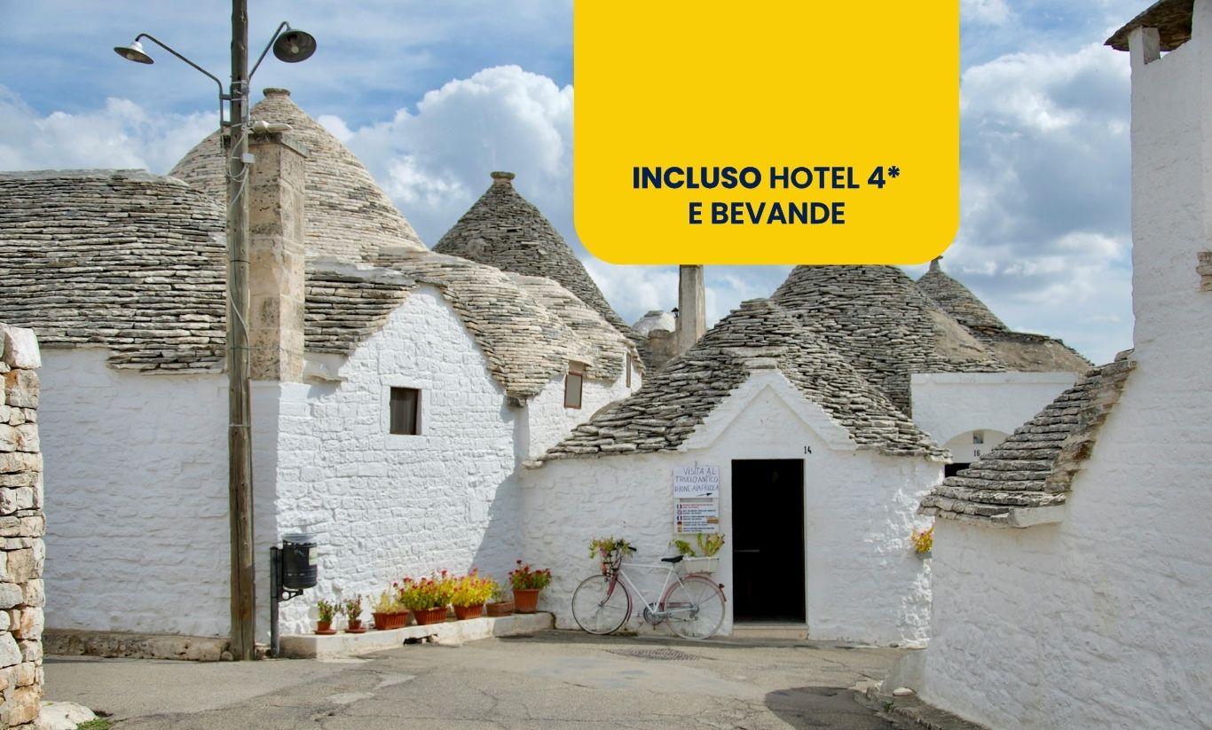 Prima colazione in hotel. In mattinata incontro con la guida e partenza per Alberobello percorrendo la Valle d’Itria. Giunti a destinazione visita guidata della nota “città dei trulli”, borgo pugliese affascinante e suggestivo che è stato inserito nel 1996 nella lista di beni dichiarati Patrimonio dell’Umanità dall’UNESCO. La città ha ottenuto sia la Bandiera Arancione dal Touring Club Italiano che il riconoscimento come uno dei “Borghi più belli d’Italia” dall’ANCI. Si potrà ammirare il Trullo Sovrano, la Chiesa dei Santi Medici, Rione Monti e Chiesa di Sant’Antonio. Pranzo libero.