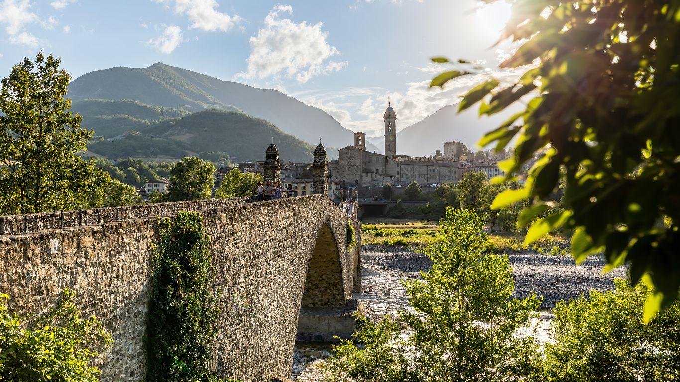 All’arrivo a Bobbio incontreremo la guida per immergerci nel cuore autentico di uno dei borghi medievali più affascinanti dell’Emilia-Romagna. La visita si aprirà con il suggestivo Ponte Gobbo, detto anche Ponte del Diavolo, con le sue arcate irregolari che si specchiano nel Trebbia e raccontano leggende antiche. Proseguiremo tra vicoli acciottolati e scorci silenziosi fino all’imponente Abbazia di San Colombano, centro spirituale che per secoli ha reso Bobbio un faro culturale d’Europa, con il suo complesso monastico ricco di storia e fascino. Lo sguardo salirà